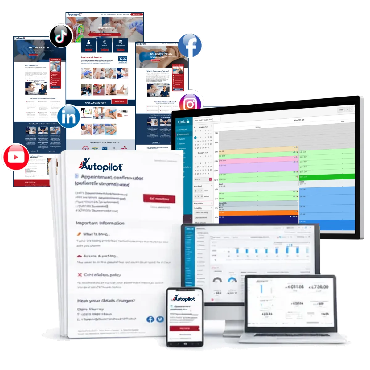 Practice Autopilot™ is an all-in-one patient management and marketing platform, built on Go High Level and seamlessly connected to Cliniko. It helps you attract more patients, retain them for longer, and run your clinic more efficiently — by automating your admin, marketing and patient communication.